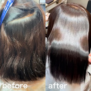 髪のダメージを最小限に抑えながら、自然なストレートラインとしなやかな質感を実現しました。